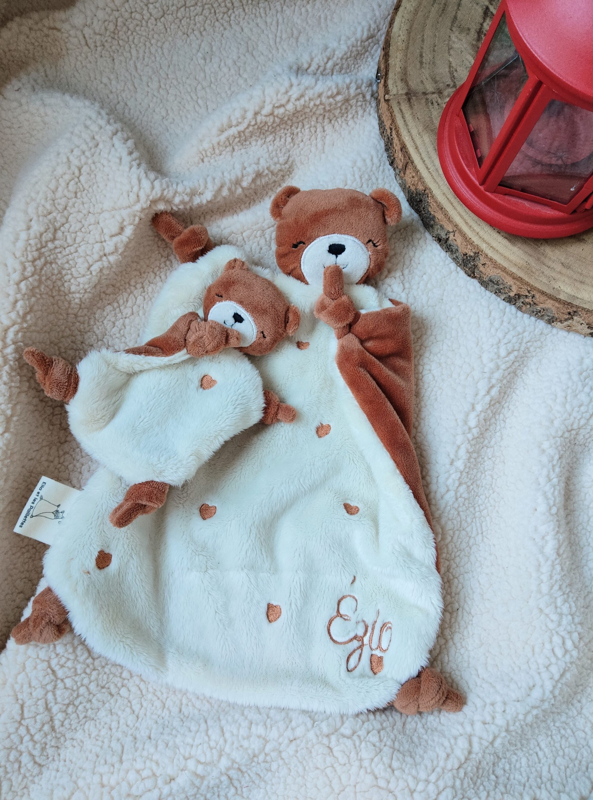 En duo pour aider les séparation quotidiennes ( crèche, école, garde alterné) , pour les parents qui souhaitent garder un petit symbole  de lien ou pour les plus grands. Un objet doux à garder sur soi, pour traverser les absences, les angoisses ou les instants compliqués.
