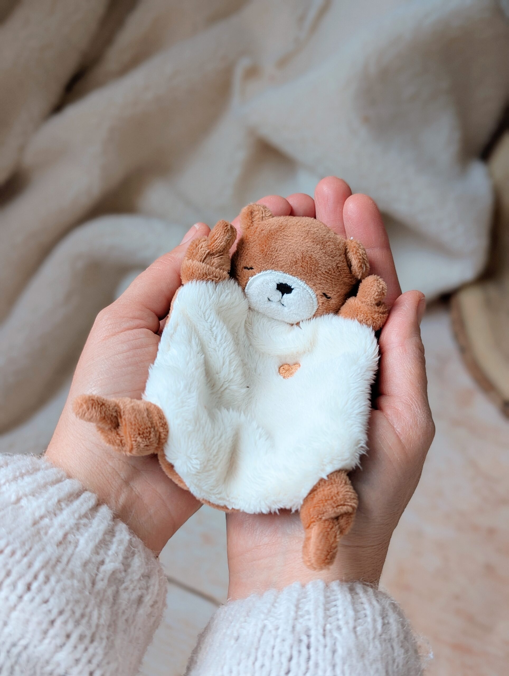 Format miniature pensé pour les séparations du quotidien, les adultes en quête de réconfort (anxiété, stress), les personnes vivant avec des troubles sensoriels, qui trouvent dans les toucher une sécurité et un apaisement